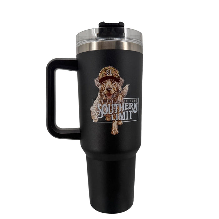 Introducing the SD-4412 SL CAMO DOG tumbler - perfect for every Southern Limit adventure. With a generous 40 oz capacity, this tumbler keeps your drink cold (or hot). Grab yours now! southern limit, southern limit, tumbler, 40oz, stainless steel, men's tumbler, drinkware